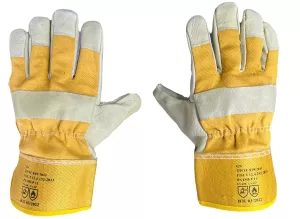 Описание:Комбинированные защитные перчатки изготовлены из прочной натуральной кожи в сочетании с плотной хлопчатобумажной тканью. Усиленная ладонь и большой палец обеспечивают надежную защиту при работе с инструментом, строительными материалами и металлическими конструкциями. Внутренняя поверхность ладони выполнена из кожи — это повышает износостойкость и улучшает сцепление. Основные материалы: Ладонь, пальцы и усиления — натуральная кожа (спилок). Тыльная…